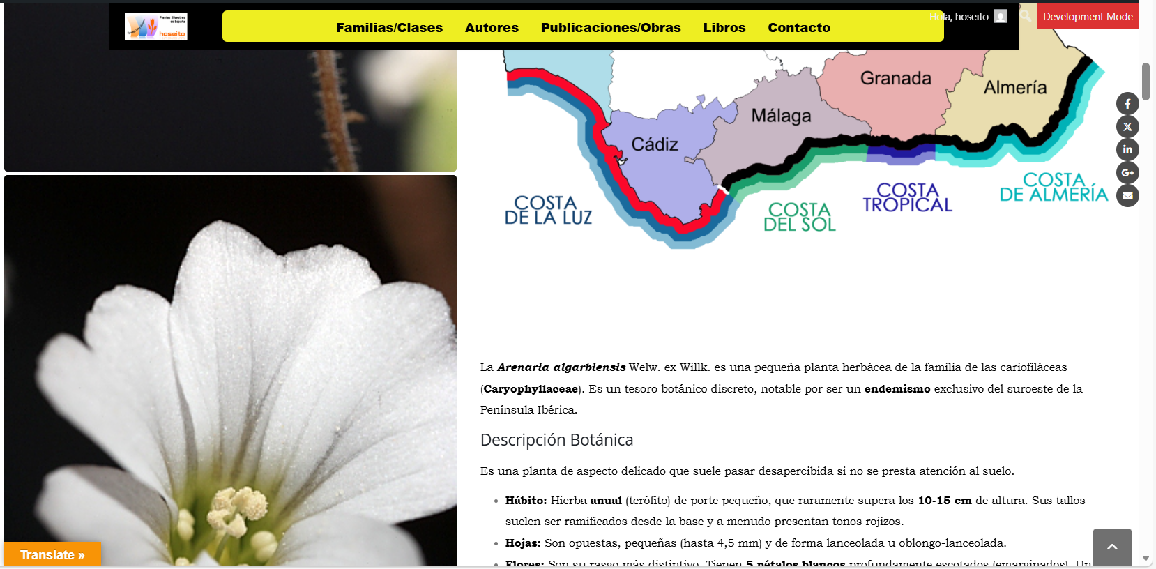 Siguiendo con WordPress esta RENOVADA WEB ofrece nuevas secciones en su menú y se reestructura internamente para categorizar con nuevos temas como las plantas silvestres de la Costa de Andalucía o las flores endémicas de Sierra Nevada.