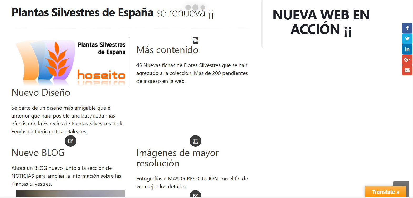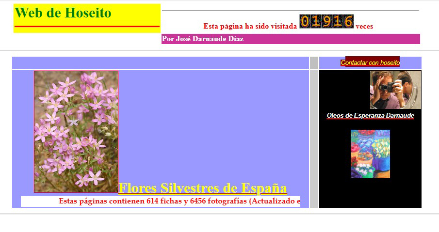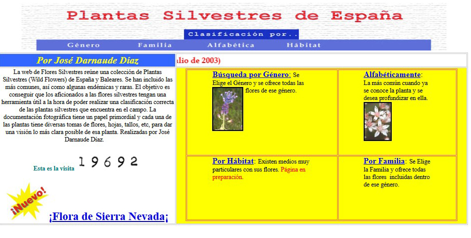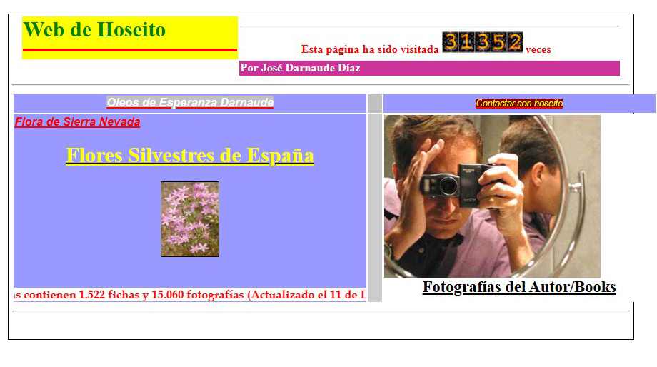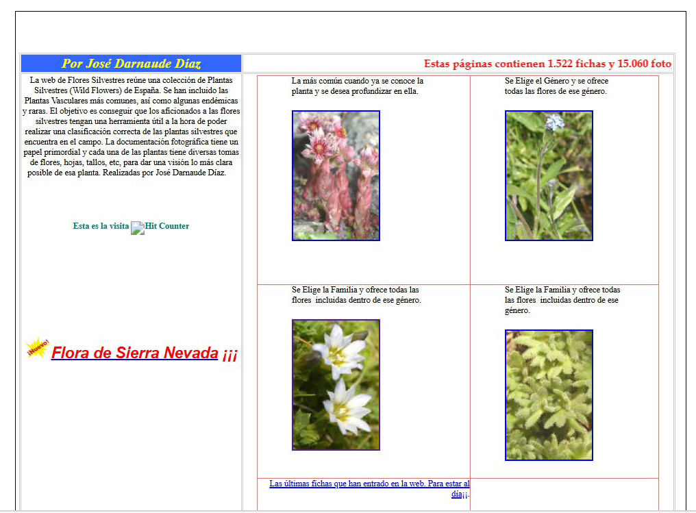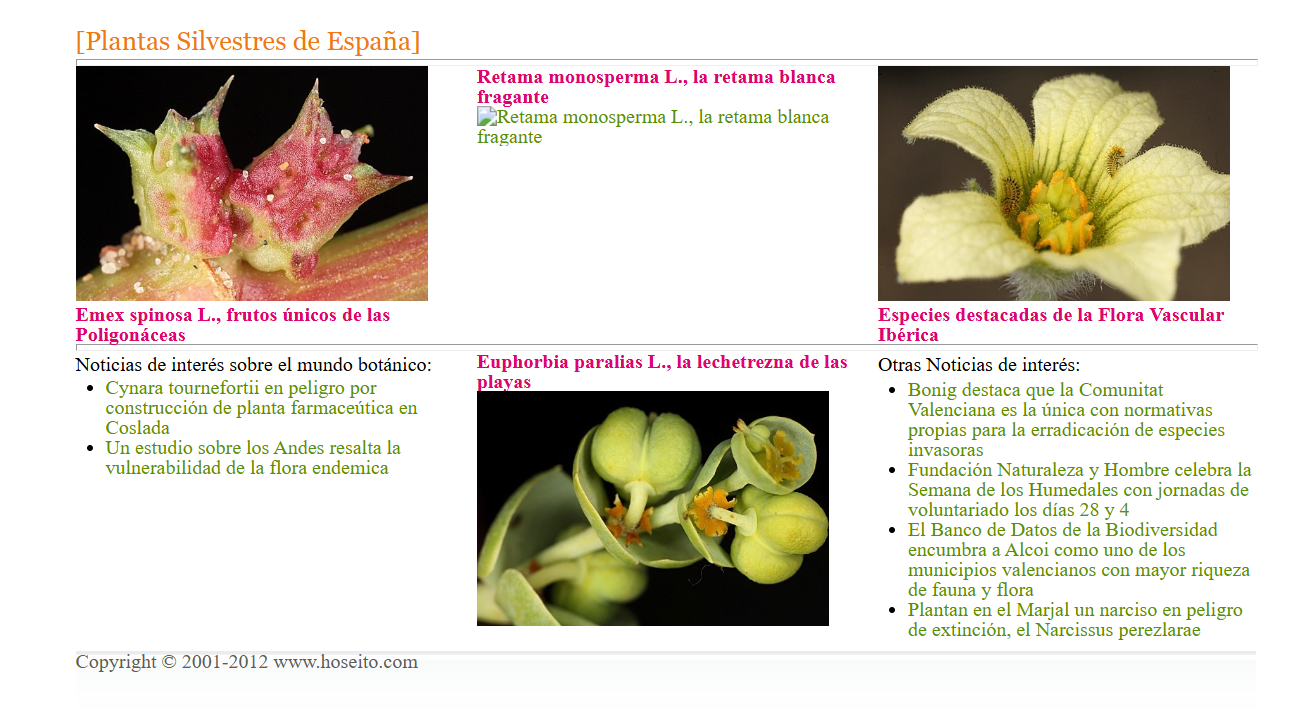 La web no era pura sobre Plantas Silvestres de España, sino que compartía sitio con la sección «Web de Hoseito» donde desarrollé un ProtoFacebook destinado a compartir fotos del pasado con mis colegas de la infancia. La idea que tanto éxito cosechó posteriormente acabó en mi caso desapareciendo por la «falta de seguridad» que requerían algunos de los usuarios. Habría que haberlos visto ahora con la que está cayendo ¡¡¡¡