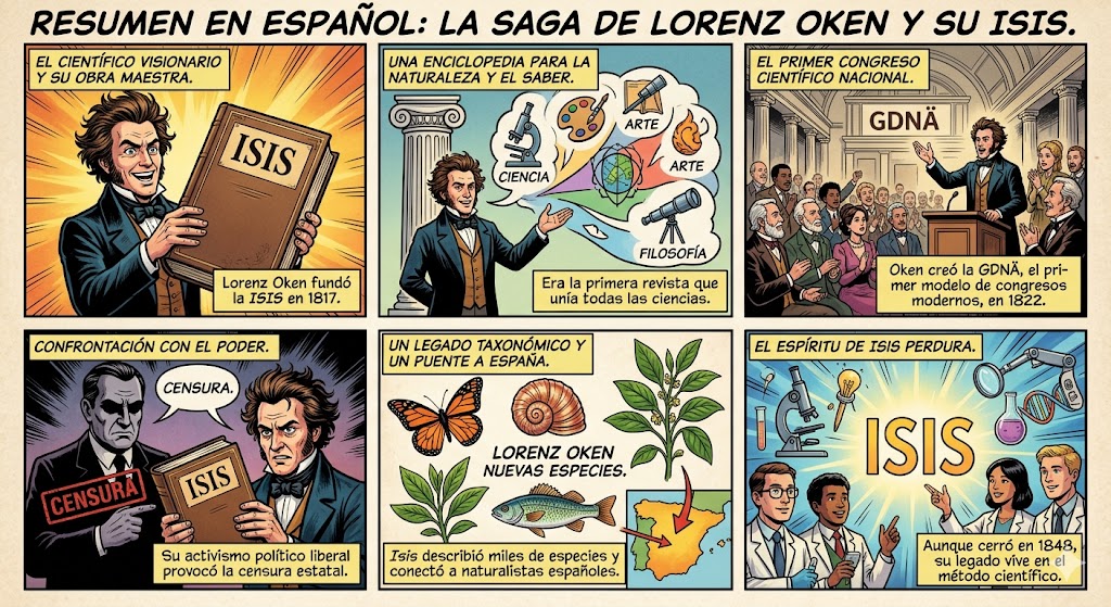 El «Bienio Liberal» y Oken: Mientras Oken luchaba contra la censura en Alemania (1817-1848), España vivía sus propios procesos revolucionarios y periodos de libertad de prensa (como el Trienio Liberal 1820-1823). La defensa que hacía Isis de la libertad intelectual resonaba con el pensamiento de los liberales españoles de la época, quienes también veían en la ciencia una herramienta de progreso nacional.