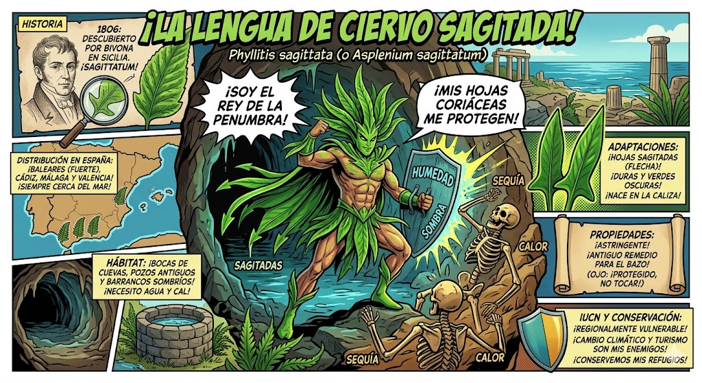 La distinción: Hasta ese momento, muchos botánicos la confundían con formas juveniles o variantes de la lengua de ciervo común (Asplenium scolopendrium). Bivona se dio cuenta de que la forma de saeta de la base de la hoja no era accidental, sino un rasgo genético constante.