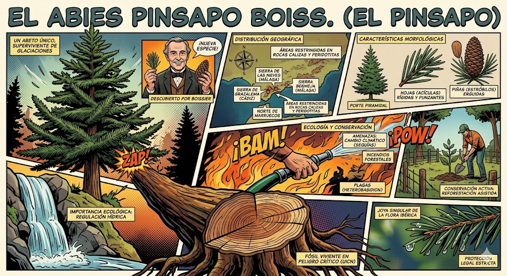 El Abies pinsapo Boiss., comúnmente conocido como pinsapo, es una de las joyas más singulares de la flora ibérica. Es una especie de abeto que sobrevivió a las glaciaciones, quedando «atrapado» en enclaves muy específicos del sur de la península.