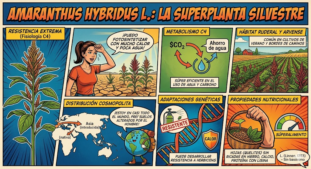 El Amaranthus hybridus L. es una auténtica «superplanta» en términos de supervivencia. Su éxito global no es casualidad; posee una serie de adaptaciones biológicas y fisiológicas que le permiten prosperar donde otras especies fracasan.