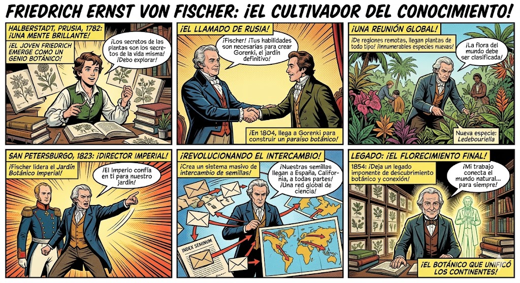 Dato curioso: Durante su gestión en San Petersburgo, Fischer envió expediciones botánicas a lugares tan remotos como Brasil y California para recolectar ejemplares, expandiendo drásticamente la colección viva y el herbario de Rusia.