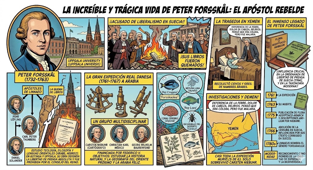 En resumen, Forsskål es importante porque representa el espíritu de la Ilustración: una curiosidad insaciable por la naturaleza combinada con una lucha valiente por la libertad del pensamiento humano.