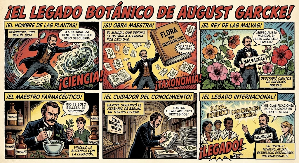 En botánica, cuando veas un nombre científico seguido de «Garcke«, significa que él fue quien describió esa especie originalmente. Algunos ejemplos: