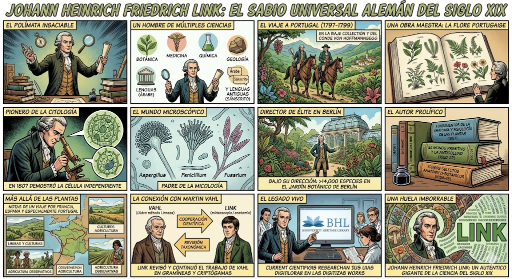 Nacido en 1767 y fallecido en 1851, Link fue un polímata cuya curiosidad no conocía límites. Aunque hoy se le recuerda principalmente como botánico, también fue un destacado médico, químico, geólogo y experto en lenguas antiguas como el árabe y el sánscrito.