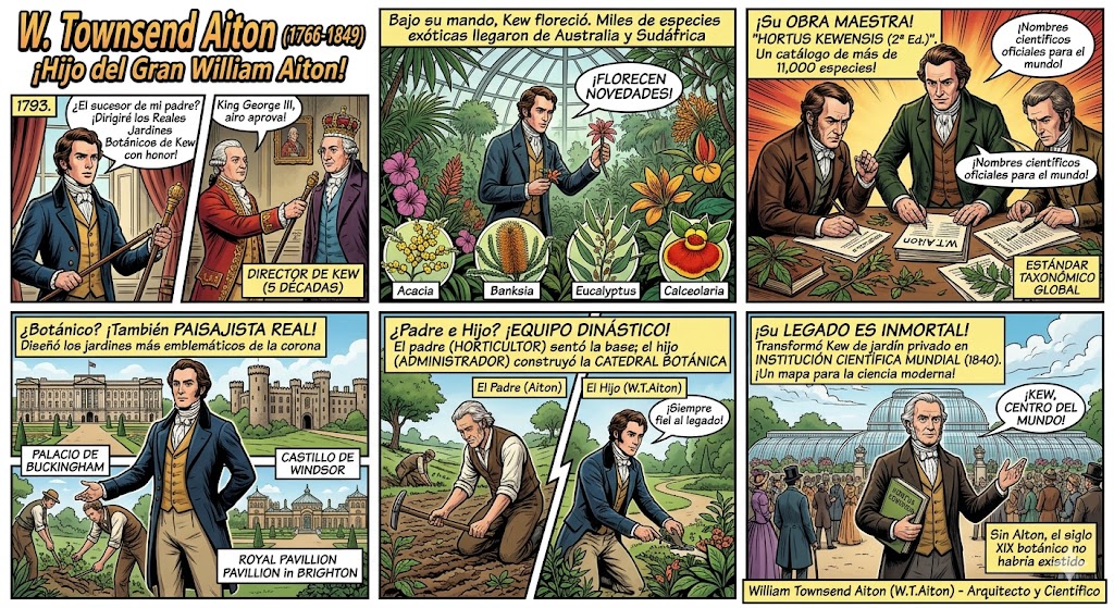 Si su padre, William Aiton, puso la semilla de Kew, William Townsend Aiton construyó la catedral. Su obra literaria aseguró que el conocimiento no se perdiera con la muerte de las plantas, convirtiendo a los jardines en una biblioteca viva.