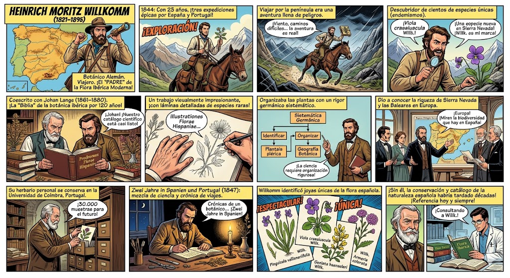 Heinrich Moritz Willkomm (1821–1895) fue un botánico y geógrafo alemán cuya labor fue fundamental para el conocimiento de la flora de la Península Ibérica. Si te interesa la botánica española, Willkomm es, sin duda, una de las figuras históricas más importantes.