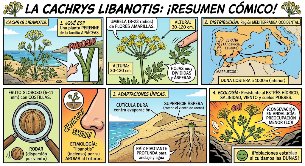 La Cachrys libanotis es una planta herbácea perenne perteneciente a la familia de las Apiáceas (umbelíferas). Es la especie tipo de su género y destaca por su adaptación a entornos costeros y áridos del Mediterráneo.