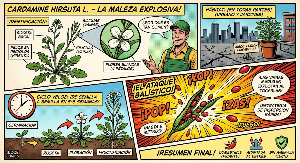 En resumen, no encontrarás a la Cardamine hirsuta en ninguna lista de especies en peligro; más bien, es una de las «ganadoras» biológicas de la globalización y la urbanización.