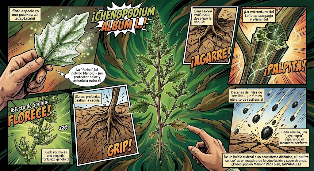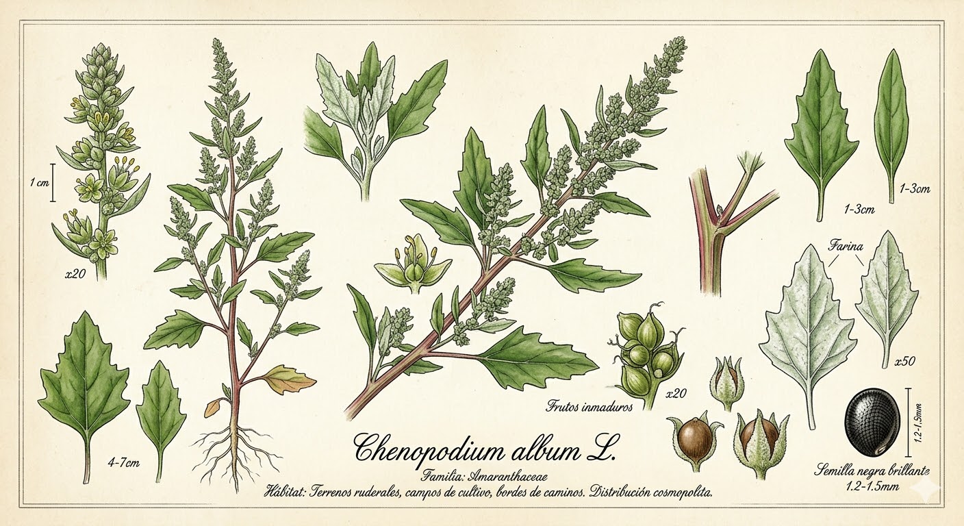 Dato curioso: Una sola planta de Chenopodium album puede llegar a producir hasta 75,000 semillas, las cuales pueden permanecer latentes en el suelo durante décadas esperando el momento ideal para germinar.