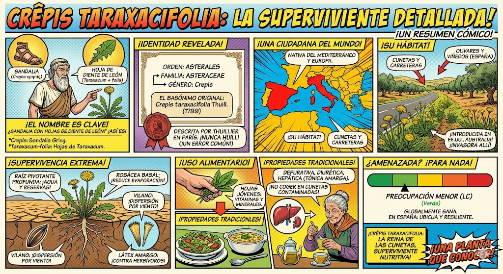 Etimología del Género: Crepis=del griego krepis; base, zapato. Denominación de Teofrasto y Plinio.