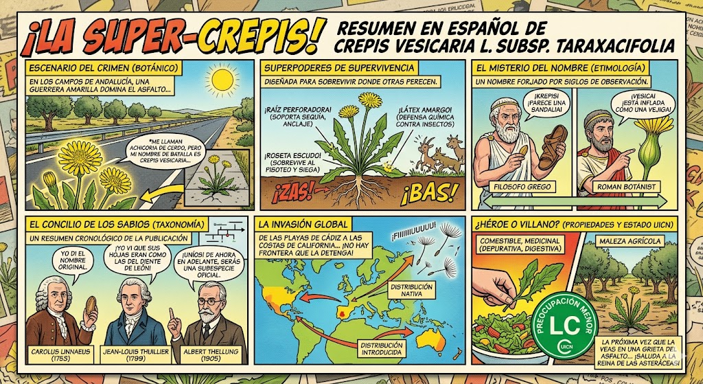 Aunque no siempre aparece en los titulares, la Crepis vesicaria subsp. taraxacifolia es objeto de estudio en universidades andaluzas (especialmente en Sevilla, Granada y Córdoba) debido a su comportamiento como «especie centinela» en suelos agrícolas y zonas industriales.