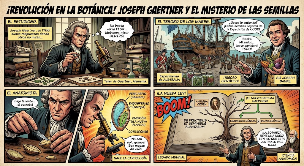 Si Linneo fue el «organizador» de la biblioteca de la naturaleza, Gaertner fue el anatomista que abrió los libros para entender cómo estaban escritos por dentro. Su importancia radica en haber pasado de una botánica de «superficie» (flores) a una botánica de «profundidad» (semillas).