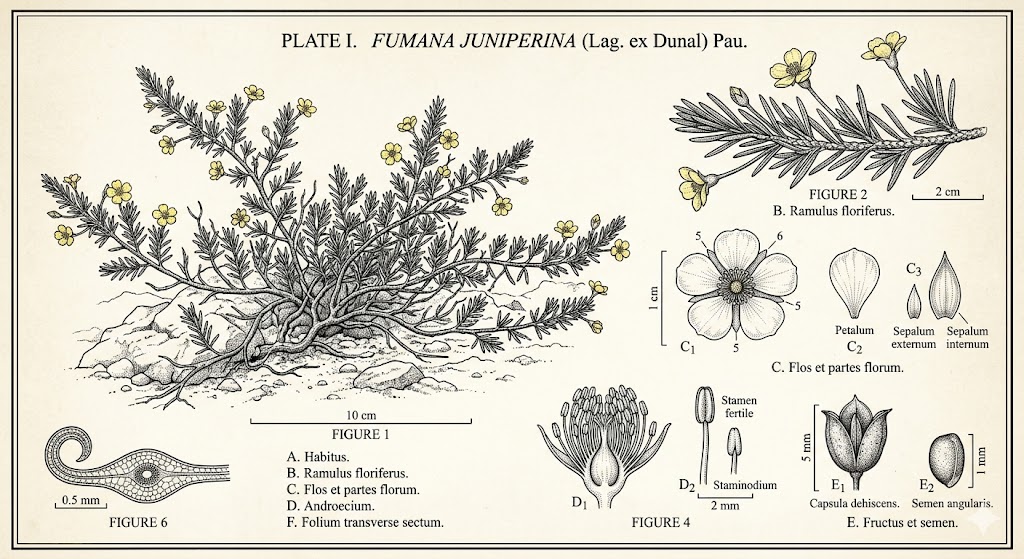 La publicación formal y la validación taxonómica de la Fumana juniperina tienen una historia compartida entre la botánica española y la francesa. Aquí tienes los datos bibliográficos clave de su descripción y su transferencia al género actual: