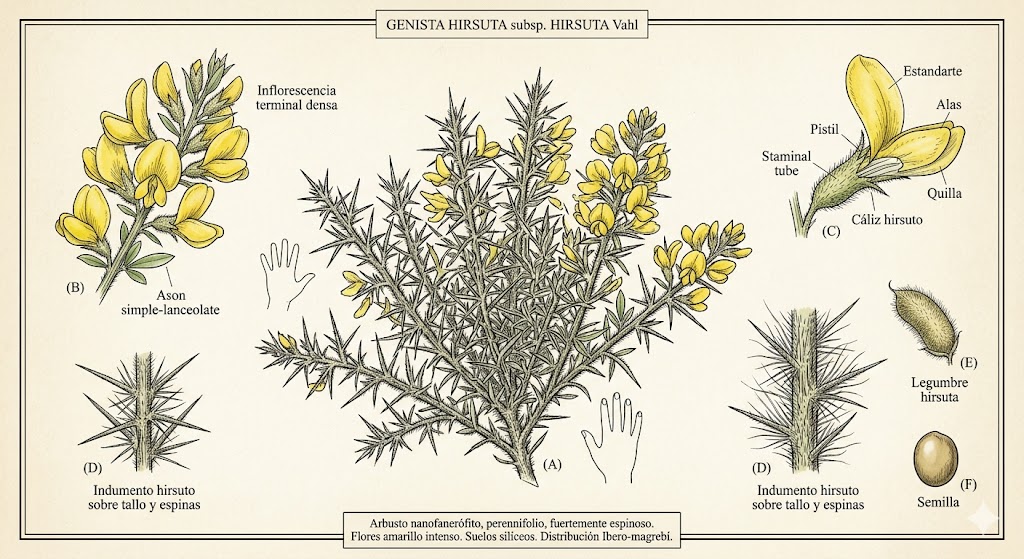 | Subespecie | Genista hirsuta subsp. hirsuta |