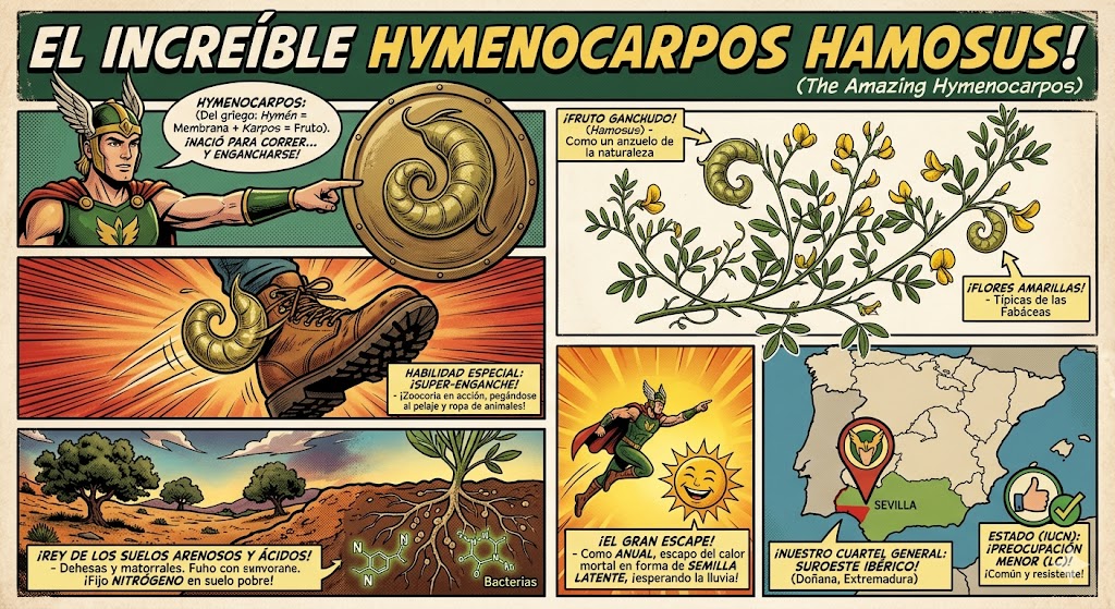 Etimología del Género: Hymenocarpos= del griego hymen,-enos; membrana. Y del griego karpos,-ou; fruto. Por el ala membranosa de los frutos.