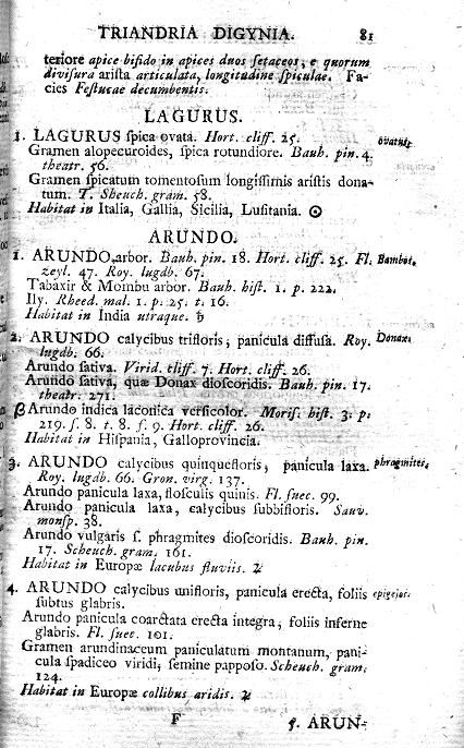 Importancia: Este libro es el punto de partida de la nomenclatura binomial moderna. Cualquier especie descrita aquí (marcada con la «L.» de Linnaeus) se considera el nombre válido y original.