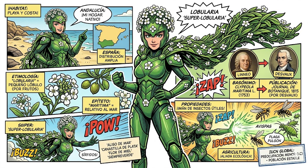 • Fenología: En Andalucía, debido al clima mediterráneo cálido, la Lobularia puede estar en floración durante los 12 meses del año, aunque su explosión principal ocurre entre febrero y mayo.