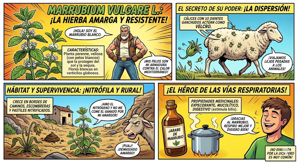 • Ventaja Competitiva: Mientras el ganado se come a sus competidoras, el marrubio crece sin control, colonizando el terreno despejado.