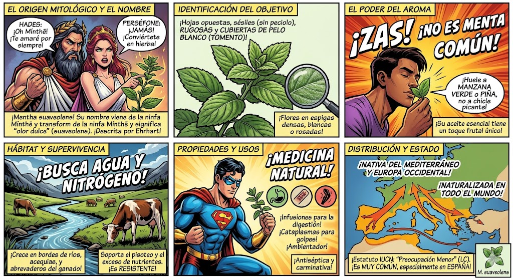 Nota Taxonómica: A menudo encontrarás en textos antiguos el nombre Mentha rotundifolia. Sin embargo, gran parte de lo que se describía como tal corresponde en realidad a la Mentha suaveolens de Ehrhart, razón por la cual su publicación de 1792 es la referencia estándar para la especie que conocemos hoy.