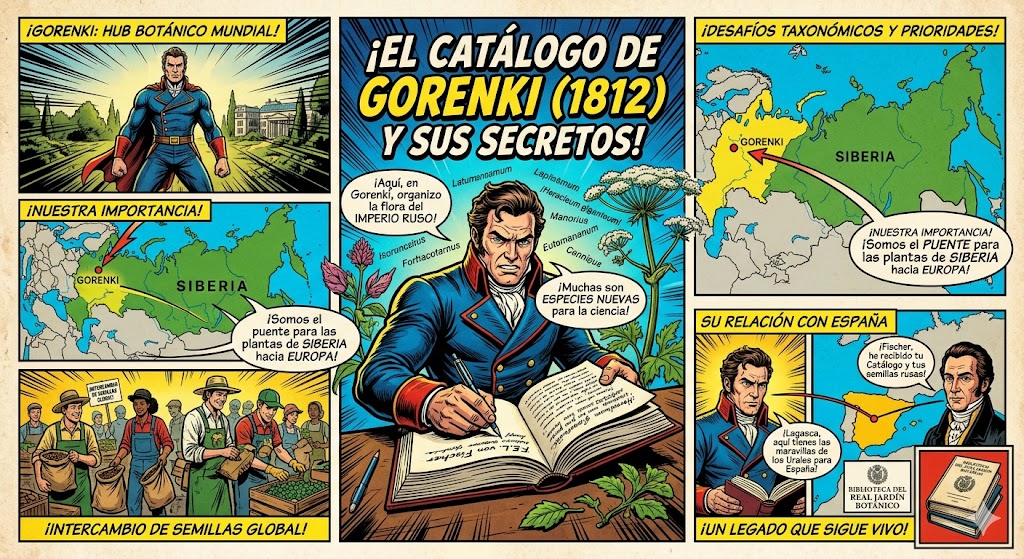 La relación de este catálogo y del jardín de Gorenki con España se enmarca en la edad de oro de la botánica, cuando las redes de intercambio de semillas y herbarios entre las grandes potencias eran vitales para el avance de la ciencia.