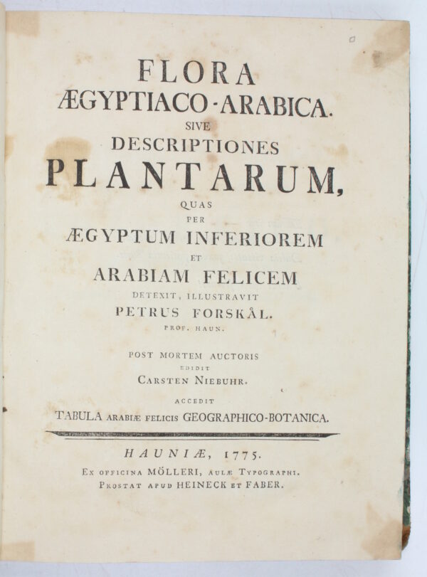 Título completo: Flora Aegyptiaco-Arabica. Sive Descriptiones Plantarum, Quas per Aegyptum Inferiorem et Arabiam Felicem Detexit, Illustravit Petrus Forsskål.