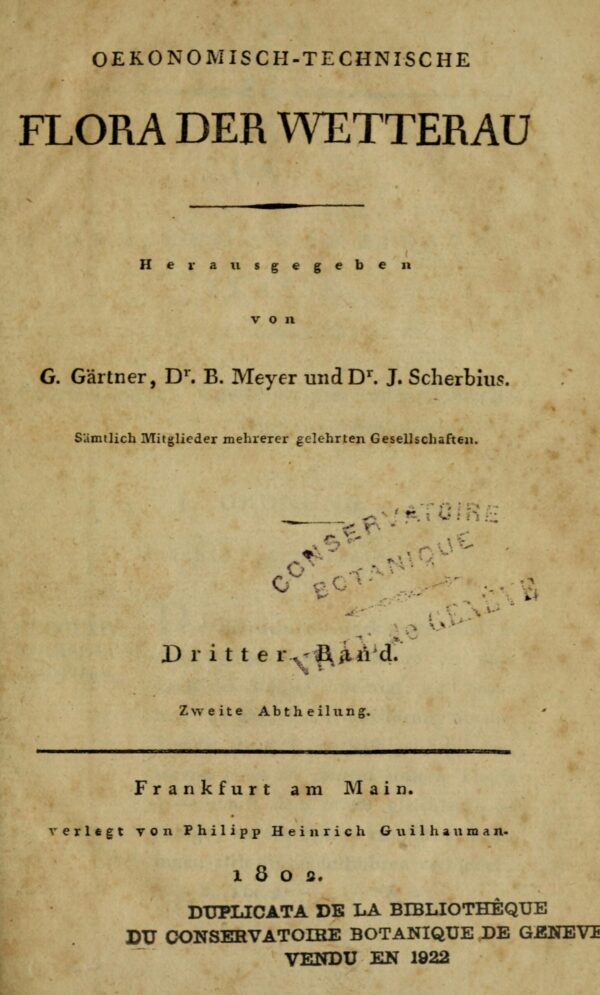 Obra «G. Gaertn., B. Mey & Scherb., Oekon. Fl. Wetterau (1799-1802) Oekonomisch-technische Flora der Wetterau»