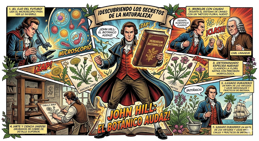En el contexto de la botánica del siglo XVIII, el concepto de «especies nuevas» en la obra de John Hill es un tema fascinante pero complejo. Hill fue un autor que se movió entre la innovación científica y el rechazo a las normas establecidas (especialmente las de Linneo).