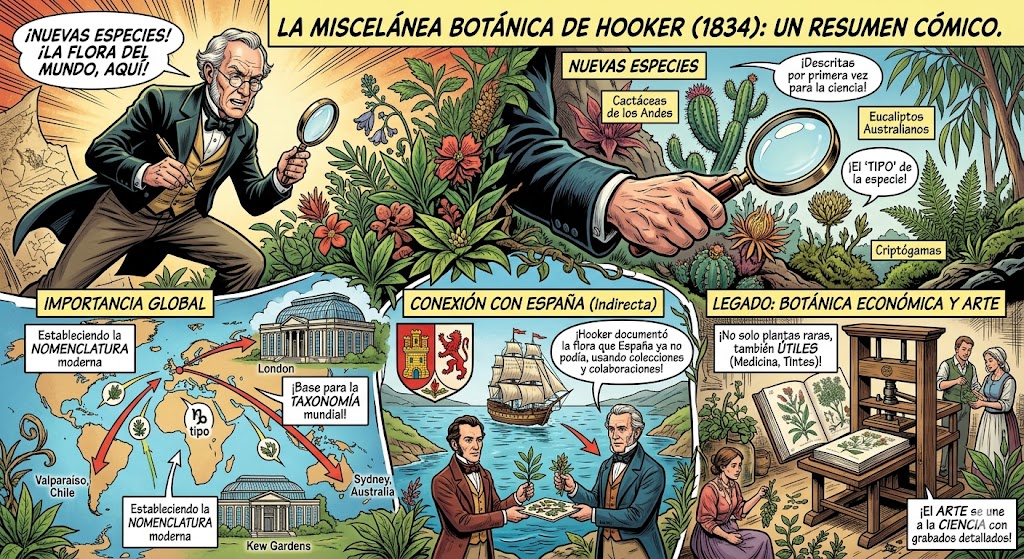 En 1834, España estaba en plena transición tras la pérdida de la mayoría de sus territorios americanos, y la obra de Hooker sirvió como el principal canal para que la flora de esos lugares (especialmente de Chile, Perú y Argentina) fuera conocida por la ciencia mundial.
