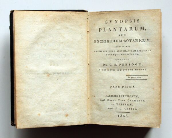 una de las obras más influyentes en la botánica taxonómica de principios del siglo XIX: «Synopsis Plantarum», escrita por el micólogo y botánico sudafricano-alemán Christian Hendrik Persoon.