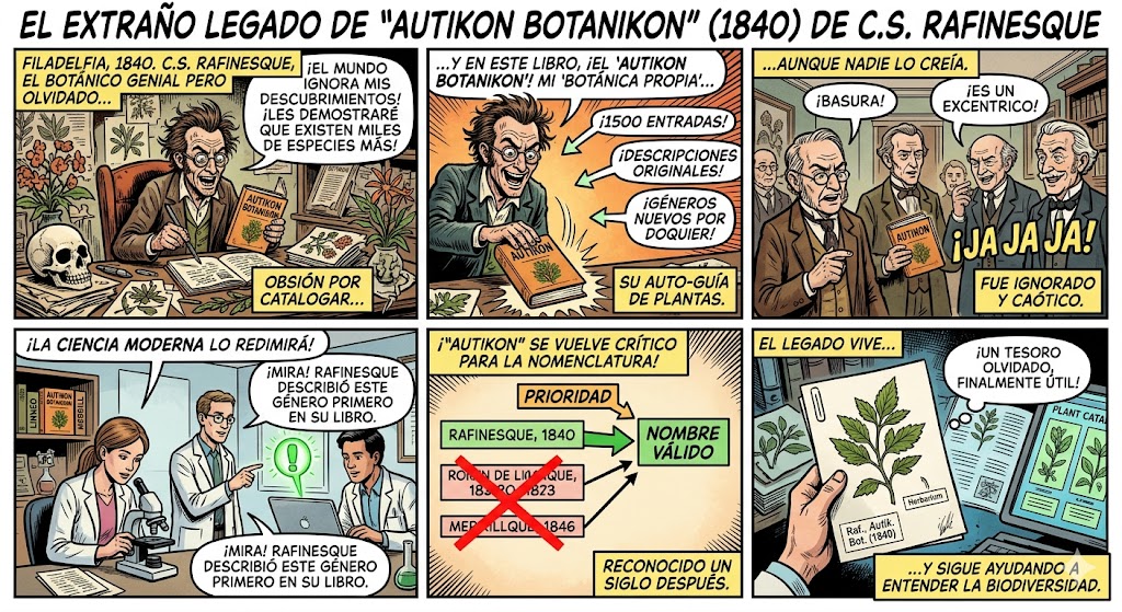 Rescate histórico: Durante casi un siglo, la obra de Rafinesque fue ignorada porque sus colegas lo consideraban «errático». Sin embargo, a mediados del siglo XX, botánicos como E.D. Merrill demostraron que cientos de nombres de Rafinesque en el Autikon fueron publicados antes que los nombres que se usaban comúnmente.
