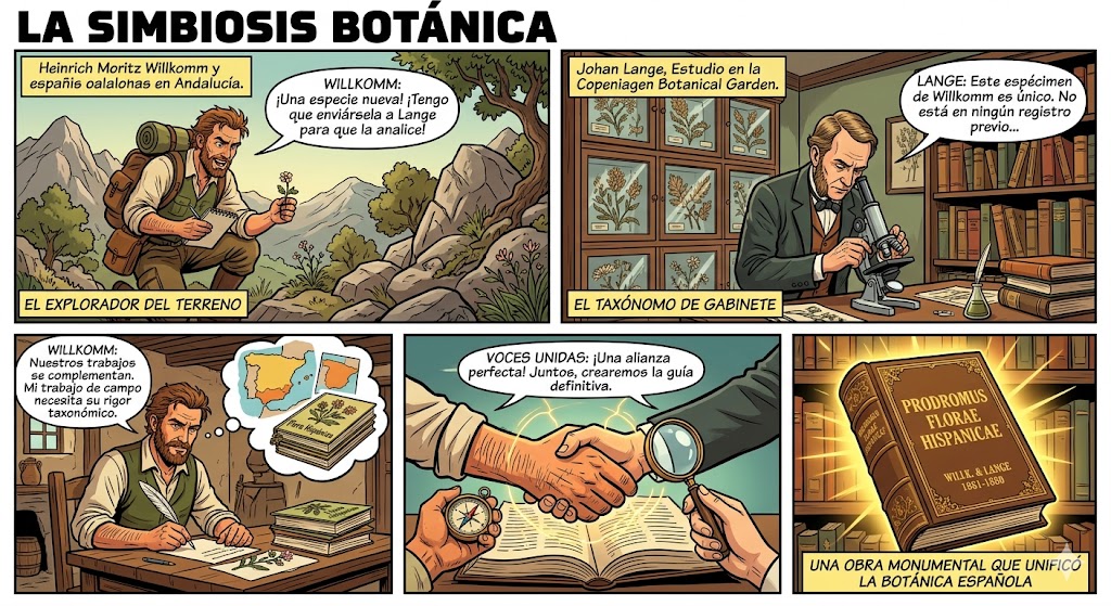 La relación entre Heinrich Moritz Willkomm y Johan Lange es uno de los ejemplos más exitosos de colaboración científica internacional en la historia de la biología. No fue solo una sociedad de trabajo, sino una combinación perfecta de dos perfiles botánicos que se complementaban para cubrir las carencias del otro.