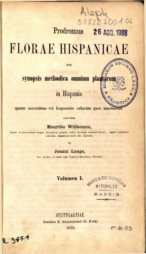 Obra «Willk. & Lange, Prodr. Fl. Hispan. (1861-1880) Prodromus florae hispanicae»