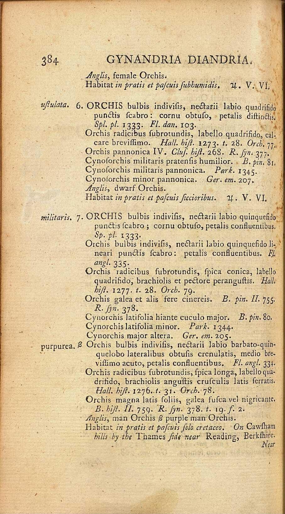 La primera edición de Flora Anglica (1762) corresponde a la página 334, pero en la segunda edición de 1778 corresponde a la página 384 que se encuentra en el Tomo II, y no en la última página del Tomo I de la primera edición. La imagen de más abajo corresponde a la segunda edición.