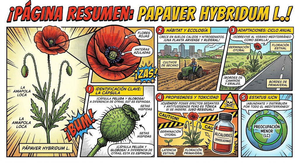 Dato curioso: En algunos lugares de España se le llama «amapola loca» precisamente por esa apariencia «mezclada» o irregular de su fruto lleno de pelos rígidos.
