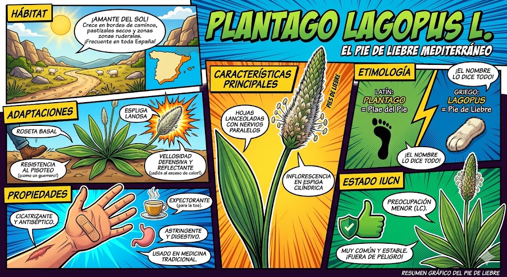 El Plantago lagopus L. presenta una serie de adaptaciones evolutivas extraordinarias que le permiten prosperar en ambientes difíciles, especialmente en el clima mediterráneo y en zonas con alta presión humana o ganadera.