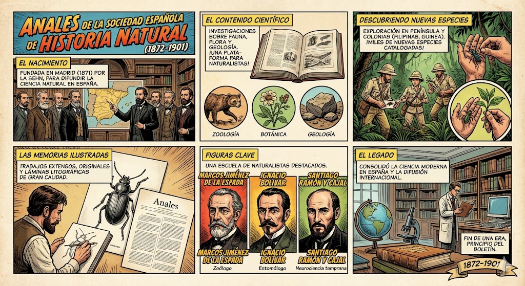 Formación de una Escuela de Naturalistas: Sirvió de plataforma de publicación para figuras clave de la ciencia española de la época, impulsando la investigación en disciplinas como la entomología, la botánica y la geología.