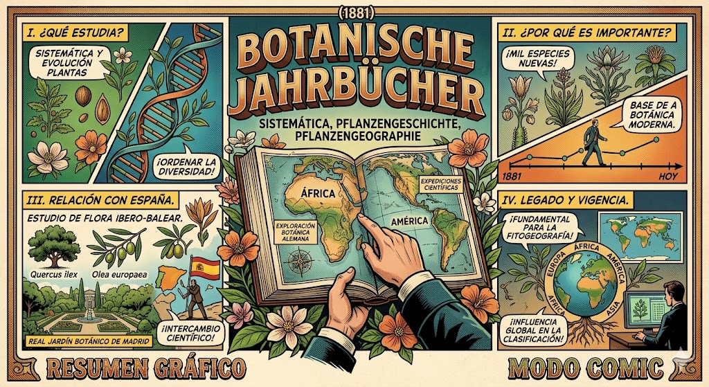 La relación de los Botanische Jahrbücher con España es profunda, aunque se manifiesta de forma más técnica y académica que popular. Durante los años de mayor expansión de la revista (finales del s. XIX y principios del XX), España y sus territorios eran focos de gran interés para los botánicos alemanes que lideraban la disciplina.