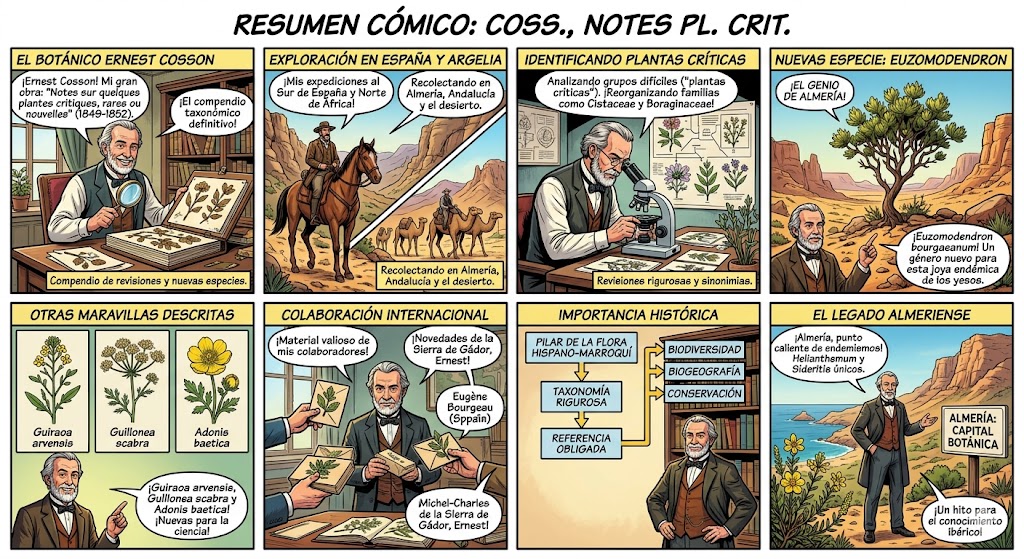 Identificación de endemismos: Cosson describió especies únicas de la península ibérica, muchas de ellas de zonas áridas como Almería, ayudando a poner en el mapa la biodiversidad de estas regiones.
