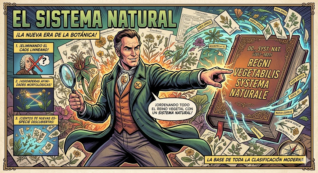 Antes de De Candolle, el mundo seguía mayoritariamente el sistema de Linneo, que era práctico pero «artificial» (agrupaba plantas solo por el número de estambres, como si clasificáramos libros solo por el color de su lomo).