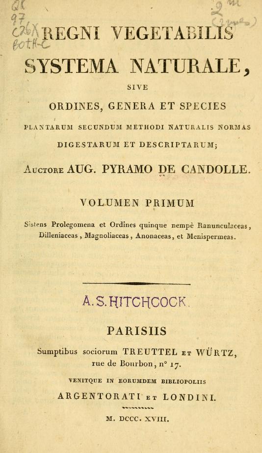 Terminología: De Candolle es quien acuñó el término «Taxonomía» años antes en su obra Théorie élémentaire de la botanique.