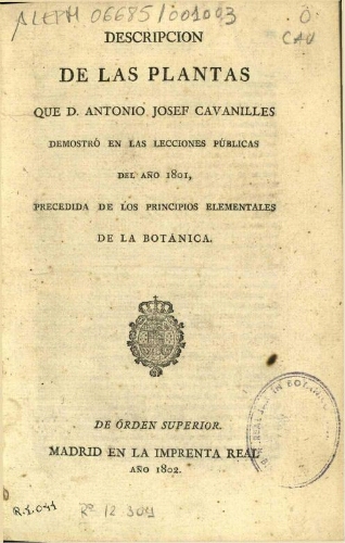 Obra «Cav., Descr. Pl. (1802-1803) Descripción de las plantas»
