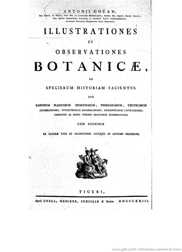 La obra «Illustrationes et observationes botanicae», publicada en 1773 por el botánico francés Antoine Gouan, es una pieza fundamental de la literatura científica del siglo XVIII. Gouan fue uno de los primeros y más fervientes defensores del sistema de nomenclatura binomial de Carlos Linneo en Francia.