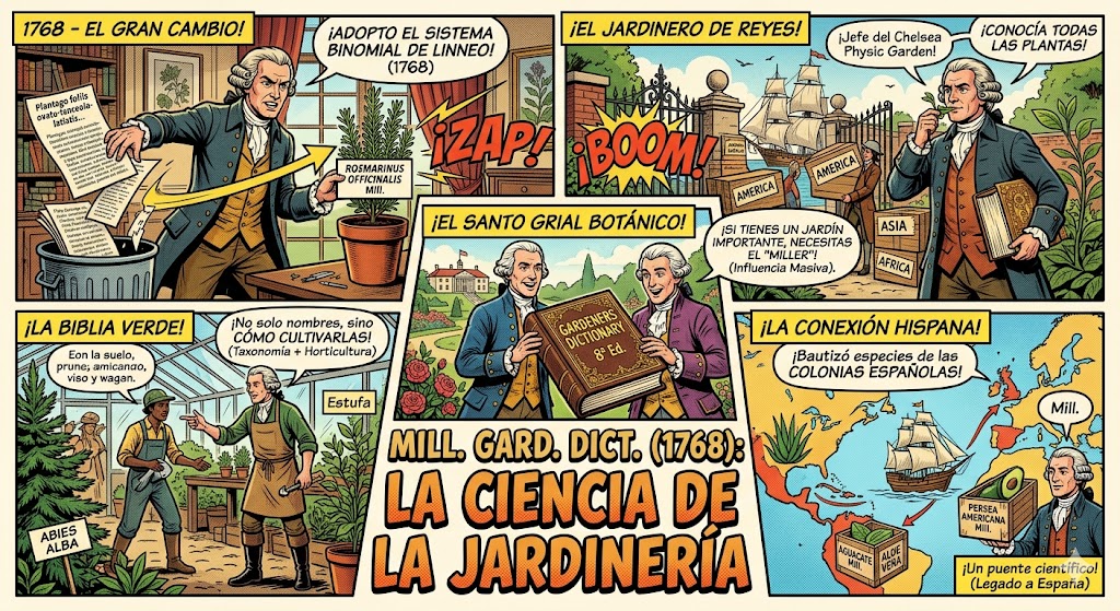 En resumen: Si hoy llamamos a muchas plantas por su nombre latino actual, es en parte porque Miller tradujo el conocimiento de los exploradores (muchos de ellos españoles) al sistema científico moderno en 1768.