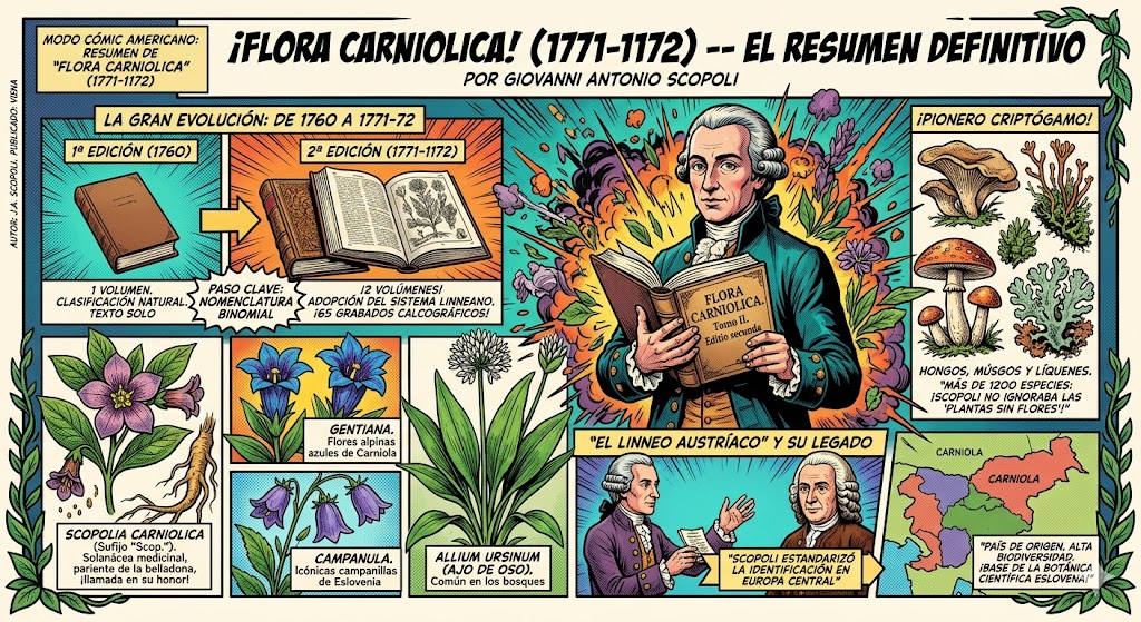 Dato curioso: Scopoli no solo se limitó a las plantas; su interés por la región lo llevó también a publicar Entomologia Carniolica (1763), una obra fundamental sobre los insectos de la misma zona.