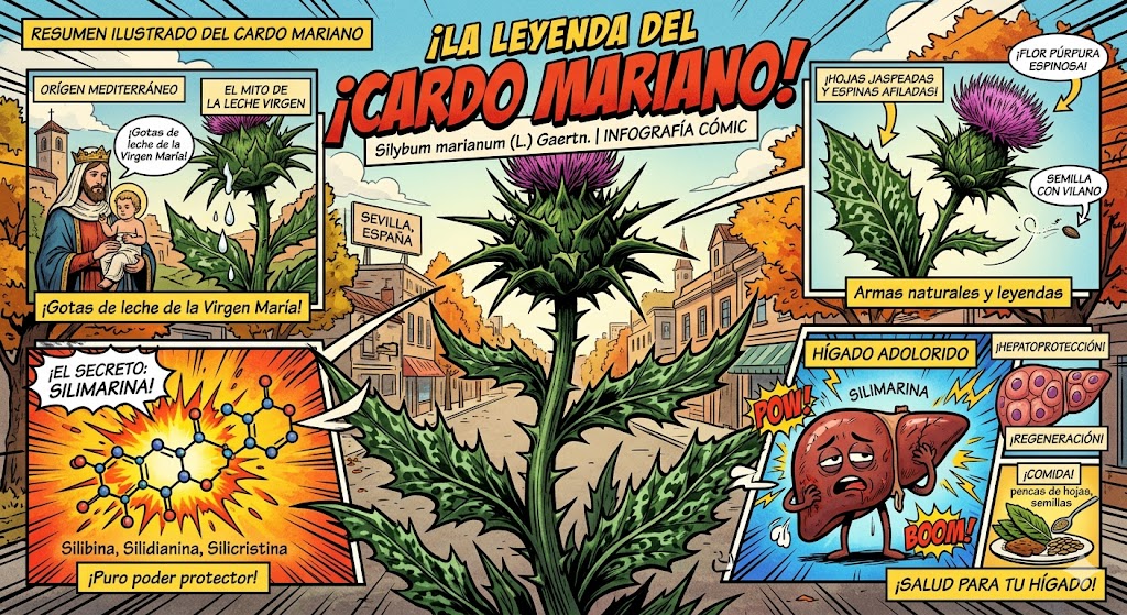 Las propiedades del Silybum marianum (L.) Gaertn. han sido documentadas desde la antigüedad (por autores como Plinio el Viejo y Dioscórides), pero su relevancia actual se debe al complejo de flavonolignanos denominado silimarina, localizado principalmente en el fruto (semilla).