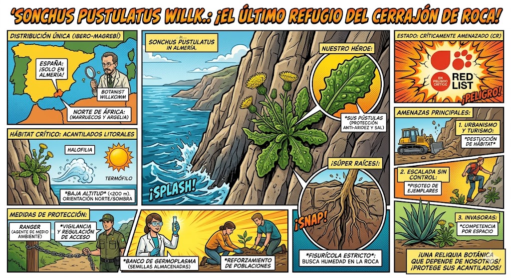 Almería es un punto caliente (hotspot) de biodiversidad precisamente por estos vínculos con África. La Sonchus pustulatus comparte hábitat o región con otros endemismos famosos de la zona: