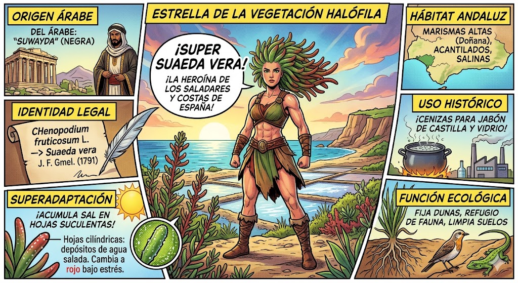 Para sobrevivir en ambientes donde la mayoría de las plantas morirían deshidratadas o envenenadas por el exceso de sal, la Suaeda vera ha desarrollado un conjunto de adaptaciones evolutivas asombrosas.