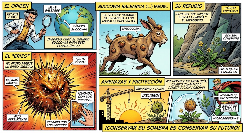 Cuando ves el nombre completo Succowia balearica (L.) Medik., la puntuación te cuenta toda esta historia: